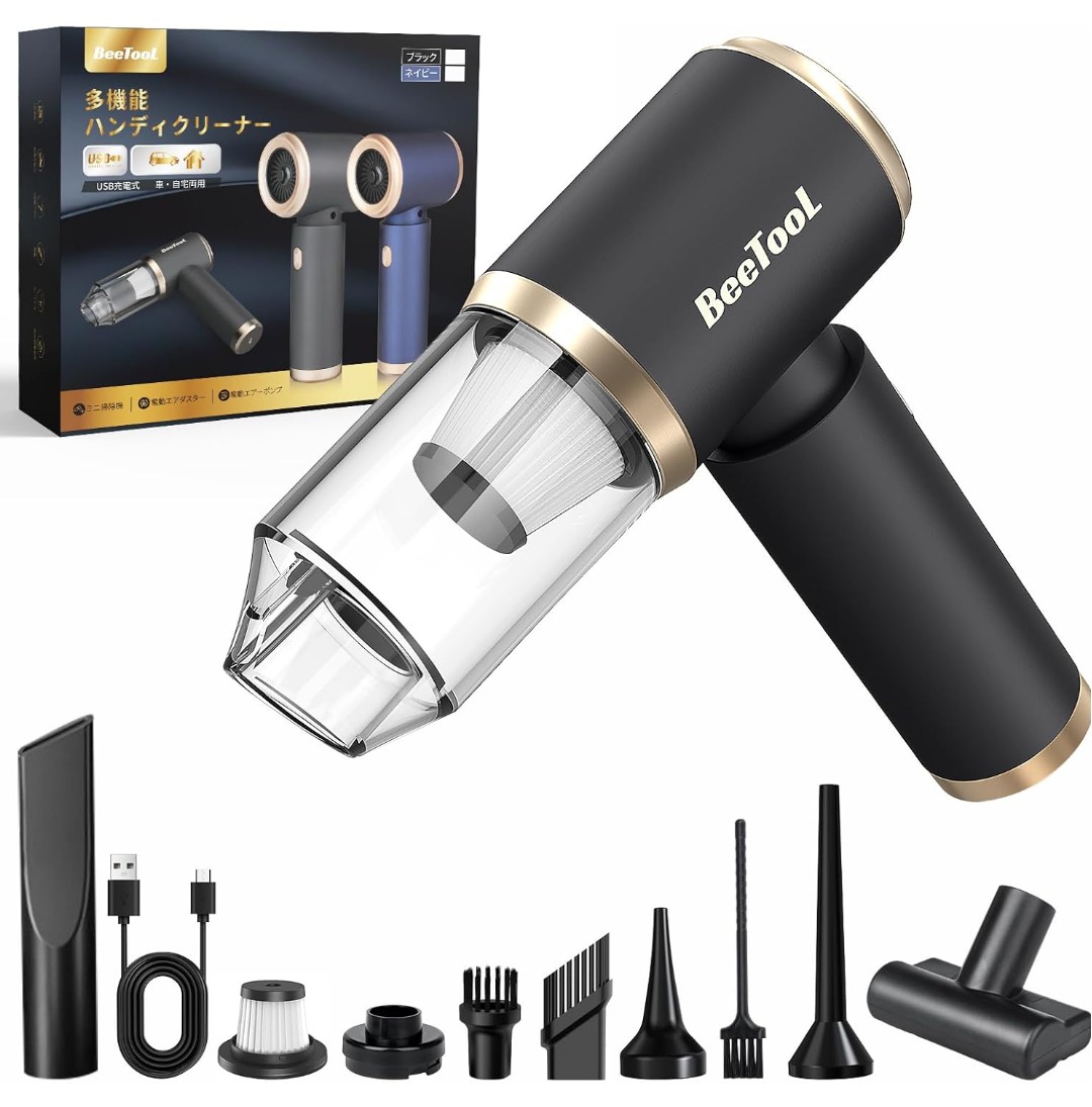 ハンディクリーナー 多機能 車用掃除機 コードレス 25000Pa 強力吸引力 BeeTool【吹き飛ぶ/吸い込む/空気入れ/空気抜き】ハンディ掃除機 パワフル 長時間稼働 超軽量0.36kg 乾湿両用 USB充電式 メーカー保証付 人気 業務用/車用清掃/家具/家庭用 日本語説明書付 ZX-106