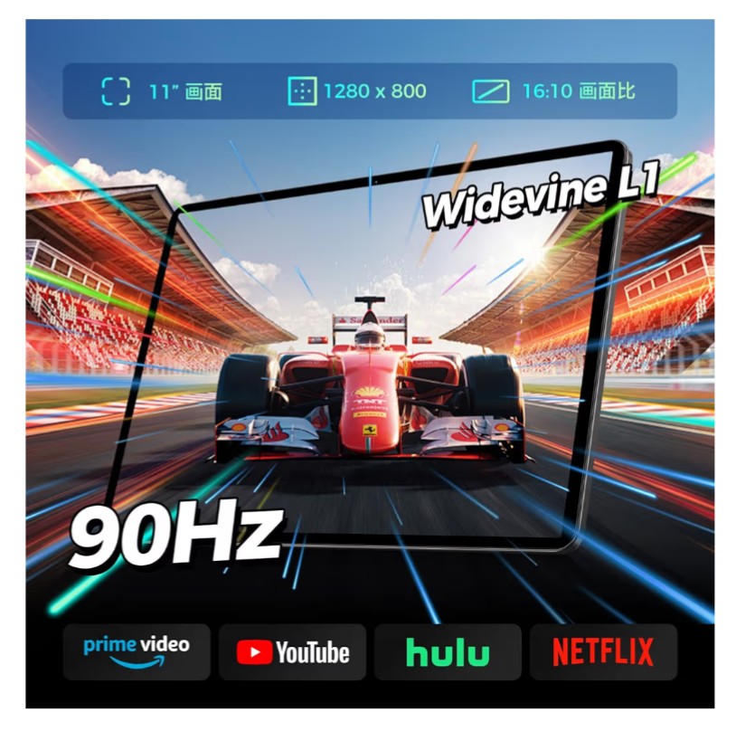 90Hz IPS大画面で、映像視聴や操作がもっと快適に:10.92インチIPSパネルを搭載したTECLAST P50T android タブレットは、1280×800の解像度と90Hzの高リフレッシュレートを備えた Wi‑Fi モデルタブレットで、画面のスクロールやタップ操作が信じられないほど滑らかです。ウェブブラウジングをしたり、人気の動画配信サービスで映画やドラマを視聴したり、ゲームをプレイしたりする際、画面の切り替えがスムーズで残像感が少なく、鮮やかな色彩と広い視野角で、どの角度から見てもクリアな映像を楽しめます。さらにGoogle Widevine DRM L1認証に対応しているので、Netflixなどの対応サービスで高画質コンテンツを存分に楽しむことができます。