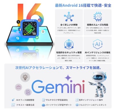 次世代Android 16搭載で、日常操作がもっとスムーズに:TECLAST P50T タブレット(タッチペン付き)は最新のAndroid 16オペレーティングシステムを搭載した11インチタブレットで、直感的に使いやすいUI設計、強化されたプライバシー保護機能、そしてバッテリー効率の最適化を実現しています。学生がオンライン授業を受ける際、ビジネスパーソンが資料を確認する際、家族が家で娯楽を楽しむ際など、あらゆる日常シーンでアプリの切り替えや操作が滞りなく行え、Googleの最新セキュリティパッチが継続的に適用されるため、大切なデータをしっかり守りながら安心して使用できます。マルチタスク機能も強化されているので、複数のアプリを同時に開いて作業しても、動作の遅延を感じることが少なく、効率的にタスクをこなせるのが魅力です。