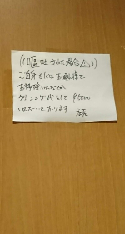 呑処でトイレの扉にペタリ、慎重に 吐きました。
