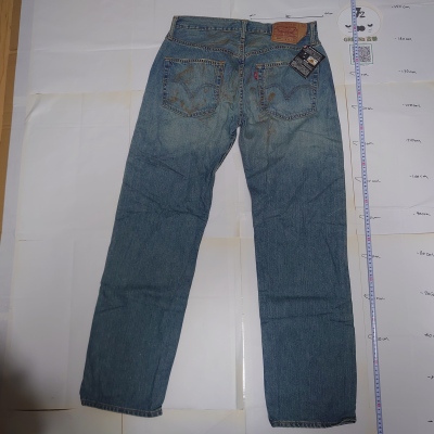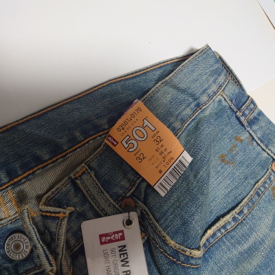 モデル: リーバイスの象徴的な「501」モデルで、フロントがボタンで開閉するボタンフライ仕様です。