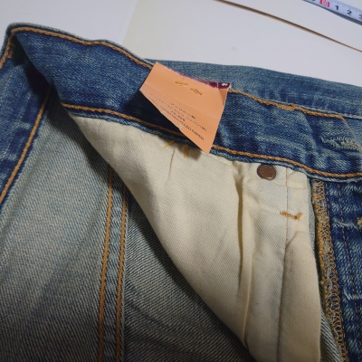 加工: タグには「LIGHT HARD USED」と記載されており、長年穿き込んだようなリアルな色落ち加工が施されています。