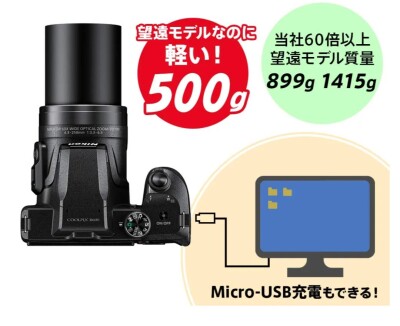 光学60倍なのに、本体重量わずか500g!