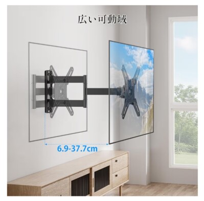 【ご購入前に】本モニター壁掛け金具の目安対応サイズは10~43インチで、耐荷重は最大15kgです。対応VESA規格(テレビ背面のネジ穴の距離)は横二点間:75~200mm、縦二点間:75~200mm。液晶ディスプレイや小型LCD/LEDテレビにオススメします。