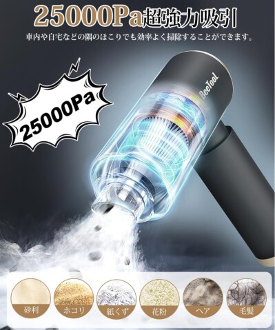 【ブラシレスモータ搭載・超強力モーター】この車用掃除機はブラシレスモータとを採用して、普通なブラシモーターと比べては長寿命/低騒音/電磁ノイズが少ない/省エネが可能/効率がよく/メンテナンス性など利点があります。アップグレードされた超強力モーターを採用、最大25000Paの吸引力をサポートし、ゴミをを逃さずしっかり吸い取ってくれます。場所を選ばずどこでも簡単に使えるようになりました。