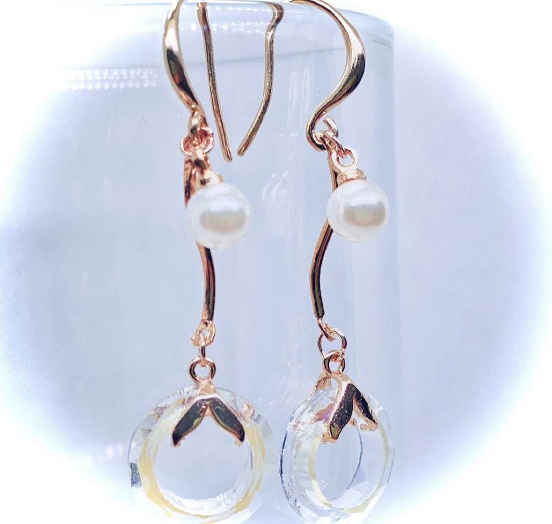 ★オーロラリングとパールの立体ロングピアス★ 600 円