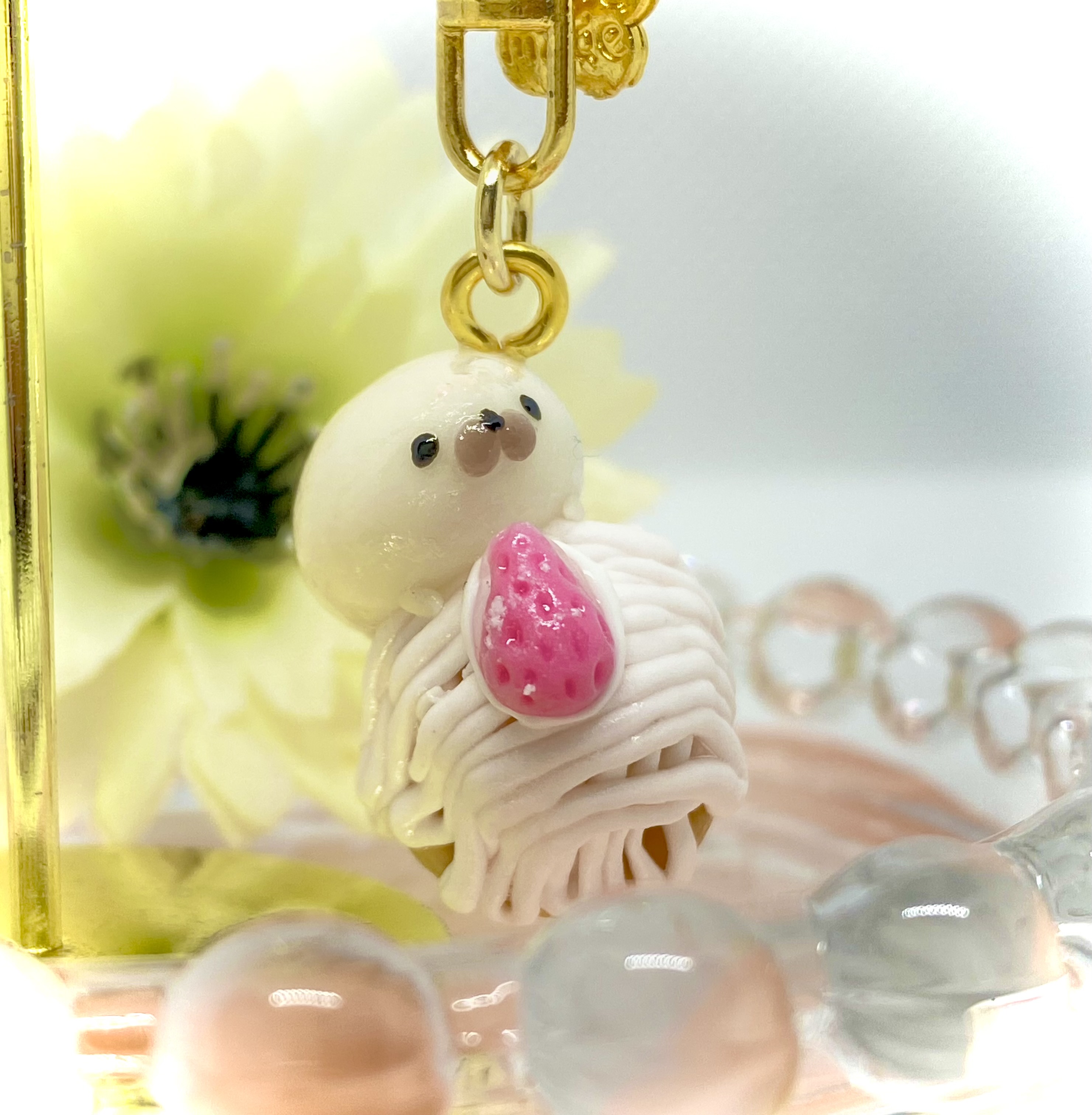 66 アザラシと苺モンブランケーキのバッグチャーム