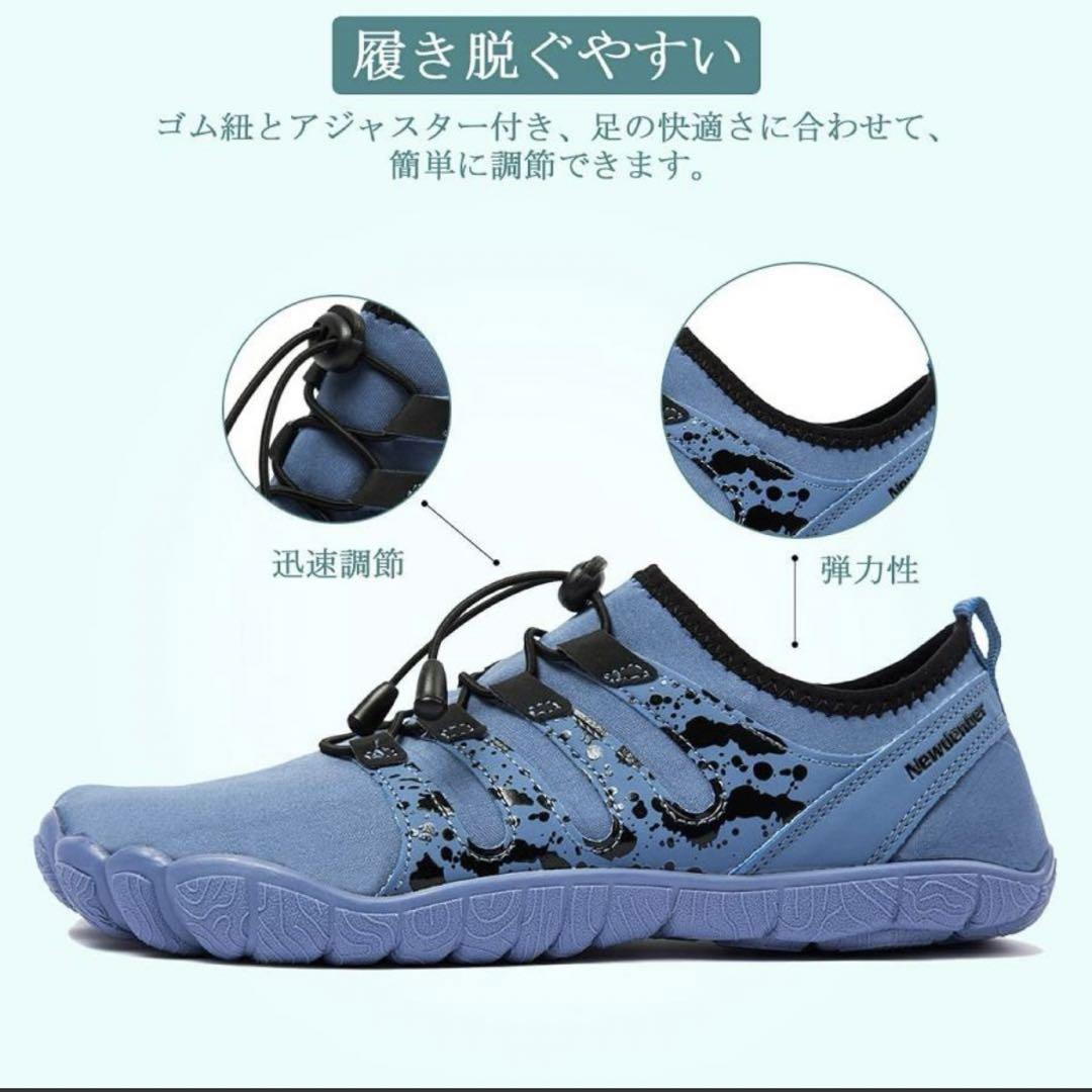 通気性と速乾性: アッパーには弾力性のあるメッシュ素材を使用し、ソックスのような柔軟性と抜群の通気性を提供します。水中外での活動に最適な速乾性を備えています。