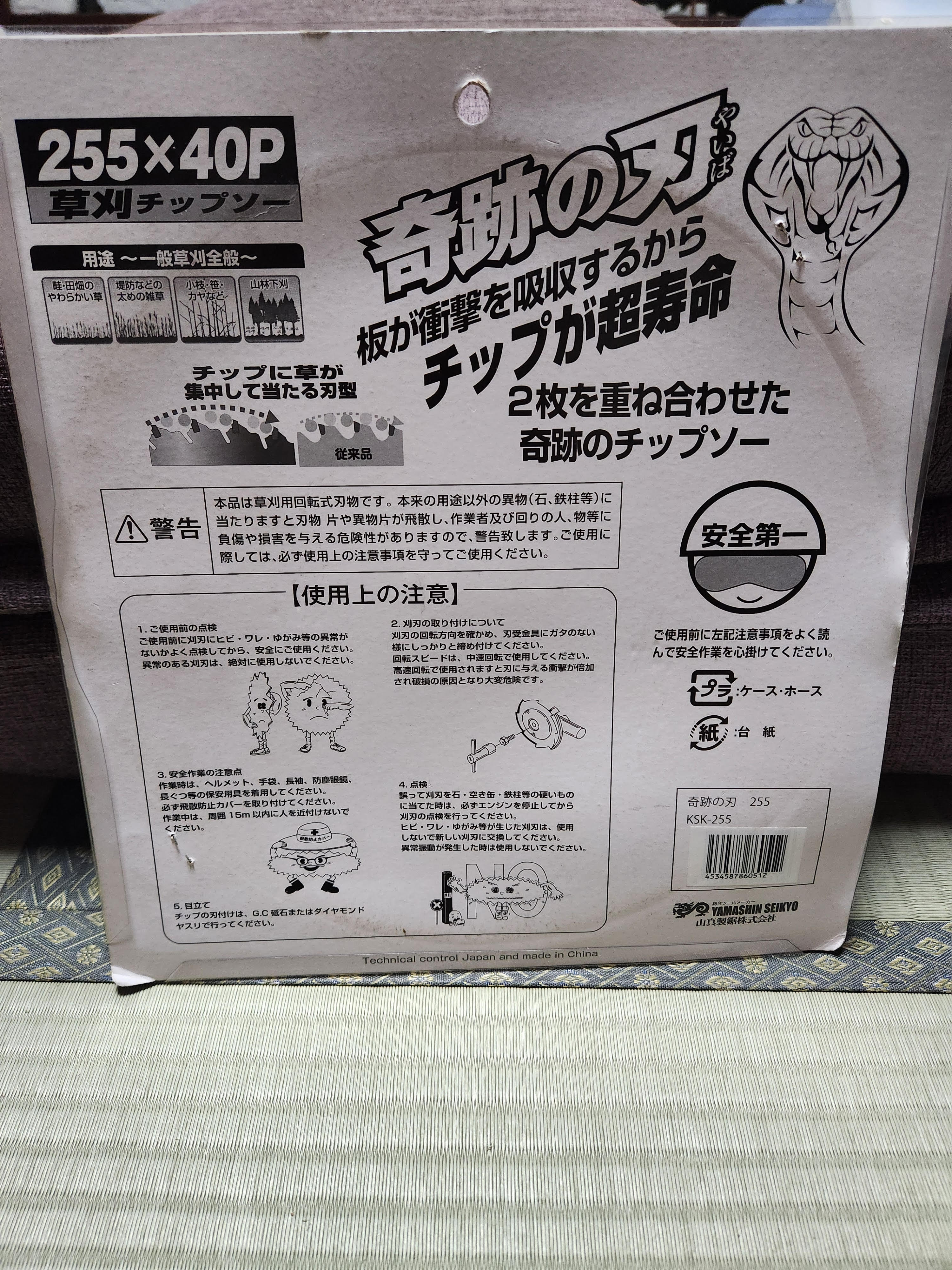 ・奇跡の刃/やいば」は、ヤマシンの独自技術により誕生した、衝撃を吸収するクッションサンドブレードをはじめて採用した刈払機用チップソー。