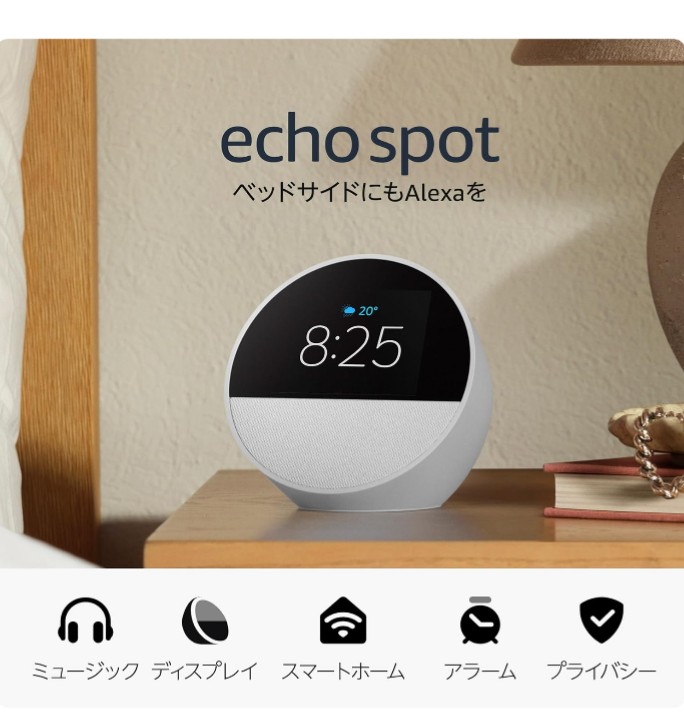Echo Spot(2024年発売) - スマートアラームクロック with Alexa、鮮やかなサウンド | グレーシャーホワイト