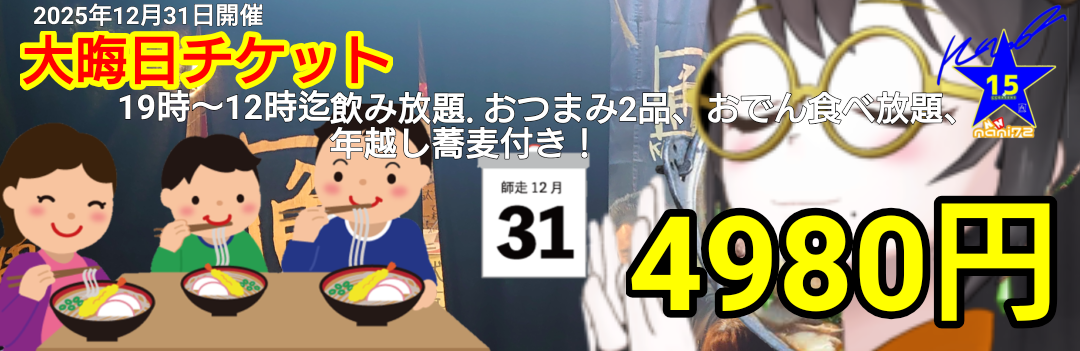 前売り2025年角打ち大晦日チケット販売※チケット 4,980 円