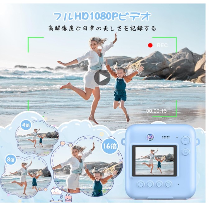 デジカメ デジタルカメラ 印刷 プリンターでき 4800万画素 1080P コンパクトカメラ 16倍デジタルズーム 印刷 プレゼント 32gメモリカー付属 ブルー