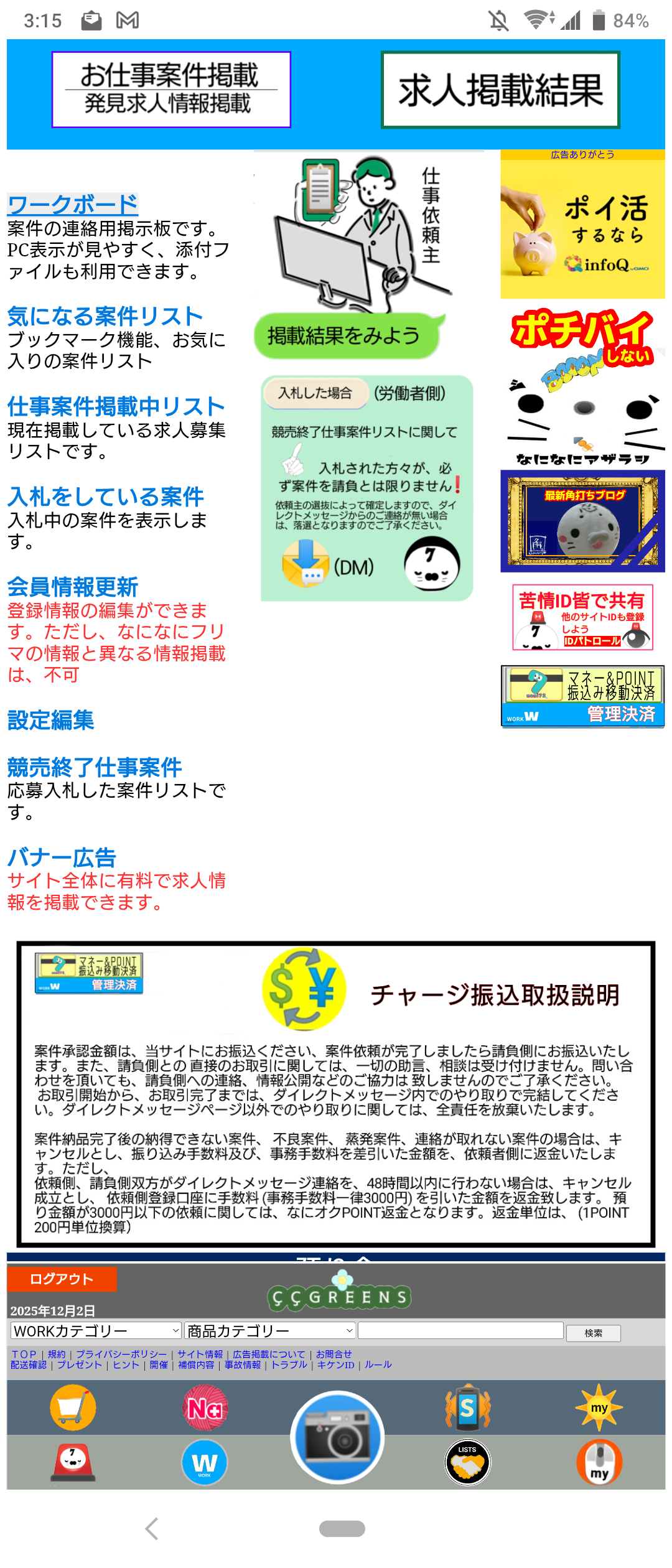 ★★★★「なになにサイト」とは、インターネット上でECを運営するサイトの名称で、具体的には「なになにフリマ&オークション(nani72.com)」という、自身でフリマサイトを構築立ち上げた、サイトです。なになにサイトは、販売手数料、落札手数料が無料で、通常の取引に加えて匿名配送取引、販売元匿名取引、ダイレクト取引、譲渡取引などの取引方法も提供しています。なになにサイトの、主な特徴は、各種手数料無料のフリマ・オークションサイトであることと、お仕事探しの機能「なになにWORK」も完備しております。求人掲載は、全て無料、さらに、オリジナルゲームも完備!もちろガチャもあります。さらなるなになにサイトの特徴は、掲載した写真、案件、商品に至るまで、1掲載で、1POINTが、プレゼントされます。お得に、出品作業、掲載作業、ゲームプレイが、できるのも魅力です。【只今】 商品預かり店の募集をしております。: 小物メインの商品を預かってくださるお店や飲食店を募集しております。預かり店をご登録をしていただける店舗には無料でバナー広告を掲載しています。 お気軽にご連絡ください。 ★ 「なになにフリマ」を利用する際の注意点 「なになにフリマ」は、他の主要なフリマアプリとは異なり、独自のプラットフォームを構築・運営する「フリマサイト」であるため、一般的なフリマアプリとは異なります。 サイトへの出店や取引を行う際は、利用規約や出品禁止物を必ず確認してください。 ◀ なになにサイト「nani72」を 知らない方へ簡単なご説明をしますね!( ꈍᴗꈍ)なになにサイトは、フリマ販売機能 オークション機能 無料譲渡掲載機能 さらに、買取機能 の4機能がご利用いただけますよ! つまり、売買から動物譲渡まで、幅広くお取引ができます。決済機能は、通常取引から、匿名取引、チャージ支払決済取引もあります。また、売り買でよく耳にします販売手数料ですが、 当サイトは、 【完全に無料】で、ご利用いただけます。 そうなんです! お気づきですか? 他のサイトでの収益が、当サイトを利用する事により、確実に利益は、上がります。 #販売手数料0円 ずーと0円 え! なに?何? それ、なに! なになに ?なに? なにオク ?知らない。知らない方に、是非!知ってほしいフリマサイト、オークションサイト、譲渡サイトなんです!そして、さらに、さらに、当サイトは、なにWORK、お仕事オークション、の求人掲載サイト機能も充実したサイトです、こちらも、掲載無料でご利用いただけます。また、他にない機能、お仕事オークションは、是非!体験して頂きたい機能の一つです。依頼側の提示金額が、まさかの! え! みたいな機能です。え、みたいな? なに? 気になる! 気になる方は、ご登録をお願い致します。(なになに登録)は、メールと、登録IDだけですので簡単ポン!さらにさらに!他のサイトの違いは、掲載するごとに、POINTが貯まります!貯まったPOINTで素敵な商品に交換や、食べ物などにも交換できます。因みに、なになにサイトには、オリジナルゲームもいくつもありまして、そのいくつかのゲームでも、POINTがもらえるのも、魅力の1つ....あとは、なになにプラス!こちらも、お好きな写真を掲載して、POINTがもらえるなどなど、使い方は、自由に拡張できるサイトが、なになにサイトなんです! 皆様の参加をお待ちしております! ★お困りの方や、操作が、解らないなどの、お問い合わせは、 ★「お問い合わせ」にて受付しております。お気軽にご相談ください。 ▷修正修繕作業について、現在も、新しい機能を構築しております、使いやすさを考えた修正作業が 、毎日、行われておりますのでサイトレイアウトが頻繁に現在、変更されますのでご了承くださいますようご協力お願いします。また、なになにサイトでは 「商品預かり店を募集しております。小物サイズの商品を出品者から預って頂き、購入者にお渡ししていただける良心的な、お店、または、飲食店様を募集しております。預かり可能のお店または飲食店様には、バナー広告を 無料掲載いたします期間は、預かり店としての登録を辞退しない限り、継続掲載をいたしますので是非ご検討お願いします。>>>>>>> ご意見、アドバイスなどございましたらなにオク管理部まで、ご連絡をお願いいたします。 .............m(_ _)m .................... ◀◀◀◀◀◀◀◀◀