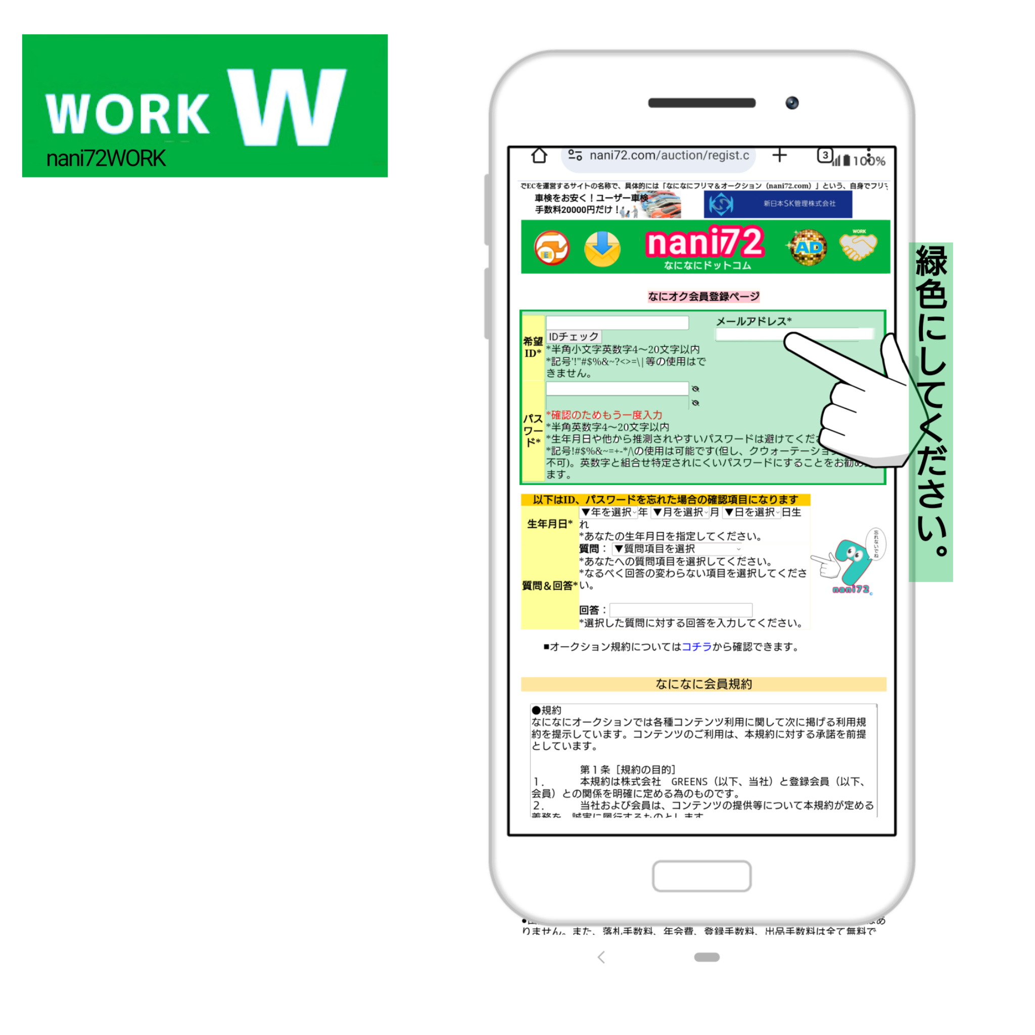 3.会員登録ページのID、PW、 メールの背景を緑に